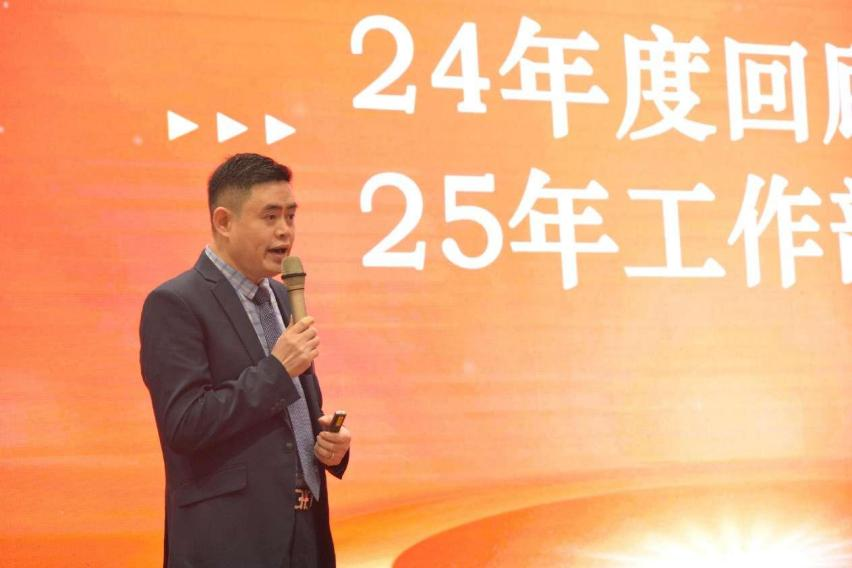 随后,基层终端事业部总监汤兵先生全面回顾了2024年各省份基层终端的业绩情况。他以大数据为支撑,深入剖析了各地区业绩变化的深层原因,既系统总结了可复制推广的成功经验,也客观指出了存在的不足与改进空间。在展望新一年营销工作时,汤总重申了公司纪律红线,特别强调将重拳整治市场乱价行为,坚决维护市场秩序,为广大合作伙伴营造一个健康有序的市场环境。